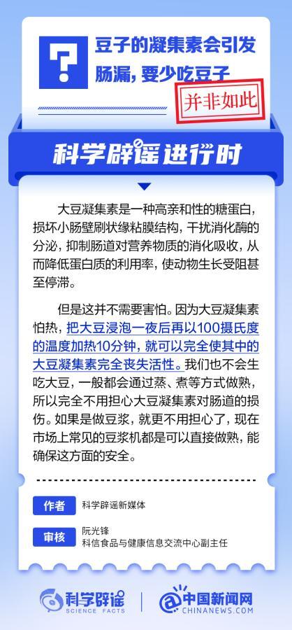 中新網(wǎng)5月29日電 大豆凝集素是一種高親和性的糖蛋白,會(huì)損壞小腸壁刷狀緣粘膜結(jié)構(gòu),干擾消化酶的分泌,抑制腸道對(duì)營(yíng)養(yǎng)物質(zhì)的消化吸收,從而降低蛋白質(zhì)的利用率,使動(dòng)物生長(zhǎng)受阻甚至停滯。但這并不需要恐慌,因?yàn)榇蠖辜訜嶙銐驎r(shí)間后,其中的大豆凝集素就會(huì)完全喪失活性。(來(lái)源:@科學(xué)辟謠 中國(guó)新聞網(wǎng)微博)