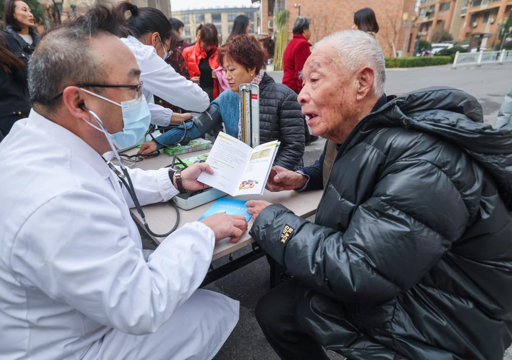 2023年12月13日,在浙江省湖州市吳興區(qū)道場鄉(xiāng)浮玉社區(qū)內,藥店藥劑師給居民普及安全用藥知識。新華社記者徐昱 攝