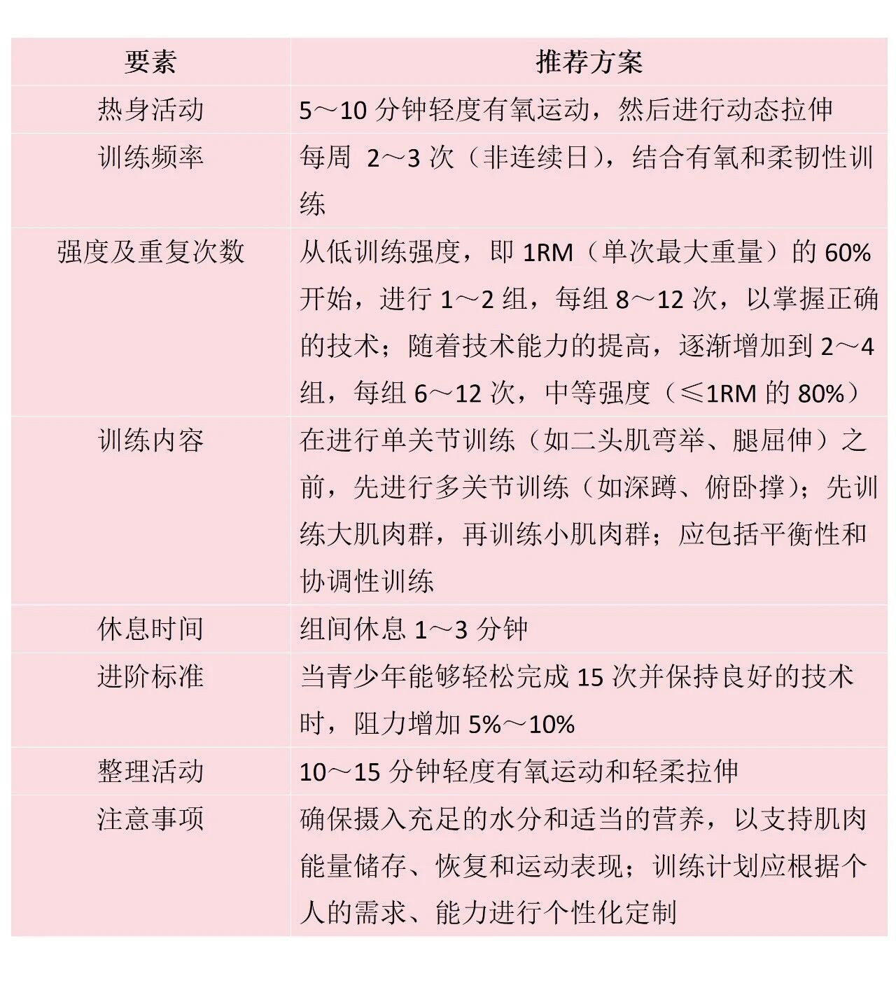 肌肉力量不足可能帶來的危害 青少年保持足夠的肌肉力量對(duì)于促進(jìn)身心健康發(fā)展,以及降低各種短期和長期的健康風(fēng)險(xiǎn)至關(guān)重要。肌肉力量不足可能會(huì)給青少年帶來如下危害。 1 短期影響 圓肩、駝背核心肌群無力導(dǎo)致脊柱穩(wěn)定性差,影響體態(tài)。 運(yùn)動(dòng)損傷風(fēng)險(xiǎn)增加肌肉力量減弱會(huì)使青少年在運(yùn)動(dòng)或日常活動(dòng)中更容易出現(xiàn)扭傷、拉傷及其他損傷。肌肉力量的減弱也會(huì)影響青少年的運(yùn)動(dòng)能力,限制他們參與體育活動(dòng)。 耐力下降 肌肉耐力差的青少年在長跑等體育測試中更容易疲勞。 2 長期健康風(fēng)險(xiǎn) 心血管和代謝問題增加肌肉量減少直接降低基礎(chǔ)代謝率,增加青少年時(shí)期胰島素抵抗、脂肪肝等代謝問題發(fā)生風(fēng)險(xiǎn)。 骨密度降低肌肉力量的減弱可能會(huì)對(duì)骨密度產(chǎn)生影響,增加日后患骨質(zhì)疏松癥的風(fēng)險(xiǎn)。 肥胖風(fēng)險(xiǎn)增加肌肉量少的人基礎(chǔ)代謝率較低,更容易囤積脂肪,形成“隱性肥胖”(體重正常但體脂率高)。 疼痛低齡化肌肉力量下降導(dǎo)致的不良體態(tài),可能使頸肩腰背痛在青少年中更加普遍。 此外,低身體素質(zhì)和因肌肉力量減弱而產(chǎn)生的身體形象擔(dān)憂,也會(huì)對(duì)心理健康產(chǎn)生影響,并可能導(dǎo)致焦慮或抑郁情緒。肌肉力量較差的青少年可能在體育課、集體活動(dòng)中表現(xiàn)不佳,導(dǎo)致缺乏自信心,甚至產(chǎn)生社交回避心理。 科學(xué)提升肌肉力量這樣做 青少年的肌肉力量訓(xùn)練應(yīng)遵循以下原則。 全程監(jiān)督所有訓(xùn)練課程都應(yīng)由了解青少年阻力訓(xùn)練原則的合格教練監(jiān)督。 技巧優(yōu)先在增加阻力或重復(fù)次數(shù)之前,應(yīng)專注于正確練習(xí)技巧。從無負(fù)荷開始,直到掌握動(dòng)作。 安全第一避免大重量訓(xùn)練,以自重訓(xùn)練和輕器械為主。 循序漸進(jìn)隨著力量和技能的提高,逐漸增加阻力和重復(fù)次數(shù)。 全面發(fā)展兼顧上肢、下肢、核心肌群的訓(xùn)練。 增加趣味結(jié)合游戲、挑戰(zhàn)等方式,提高青少年的參與興趣。 持之以恒肌肉生長需要持續(xù)刺激與恢復(fù),規(guī)律鍛煉是關(guān)鍵。 青少年的肌肉力量訓(xùn)練,推薦練習(xí)以下內(nèi)容。 上肢訓(xùn)練俯臥撐(可膝蓋著地)、彈力帶劃船。 下肢訓(xùn)練深蹲、弓步蹲、硬拉等。 核心訓(xùn)練平板支撐(30秒~1分鐘)、仰臥卷腹。 全身協(xié)調(diào)訓(xùn)練臺(tái)階跳、波比跳、跳繩等。 適合青少年的肌肉力量訓(xùn)練計(jì)劃