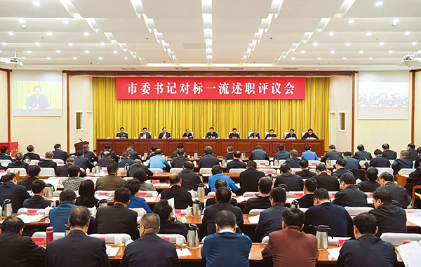圖為市委書(shū)記對(duì)標(biāo)一流述職評(píng)議會(huì)會(huì)場(chǎng)。 本報(bào)記者 李聯(lián)軍攝