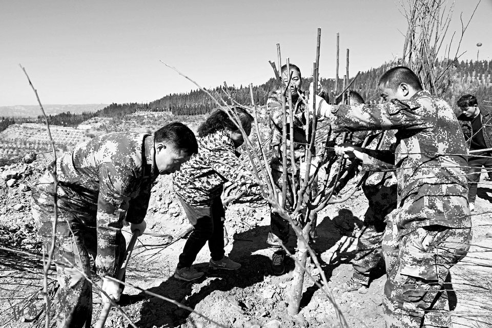 植樹現(xiàn)場,還來了一群公安干警?!白鳛槭〕枪矙C(jī)關(guān)的代表,參加植樹造林活動(dòng)我們感到無比的榮光?!碧泄簿置窬瘏谓▏诮邮苡浾卟稍L時(shí)表示,公安機(jī)關(guān)不僅是維護(hù)國家安全,保持社會(huì)穩(wěn)定、助力改革開放的護(hù)航者,同時(shí)也是綠色理念的傳播者、綠色家園的建設(shè)者、綠色行動(dòng)的先行者、綠色成果的守護(hù)者。