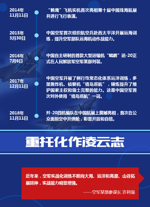 今年是新中國成立70周年,也是中國空軍建軍70周年。中國空軍以習(xí)近平強軍思想為指引,緊緊圍繞黨在新時代的強軍目標(biāo),部署和推進了一系列戰(zhàn)略布局和戰(zhàn)略舉措。