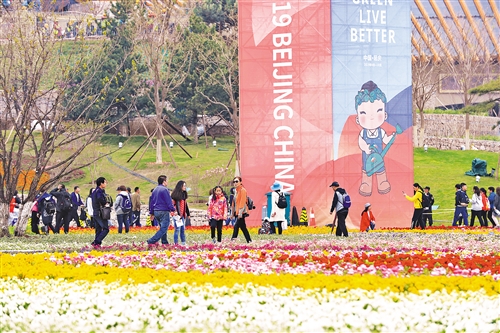 4月20日,世園會進行全負荷壓力測試,參觀者在園區(qū)內(nèi)游覽。(北京世園局供圖)