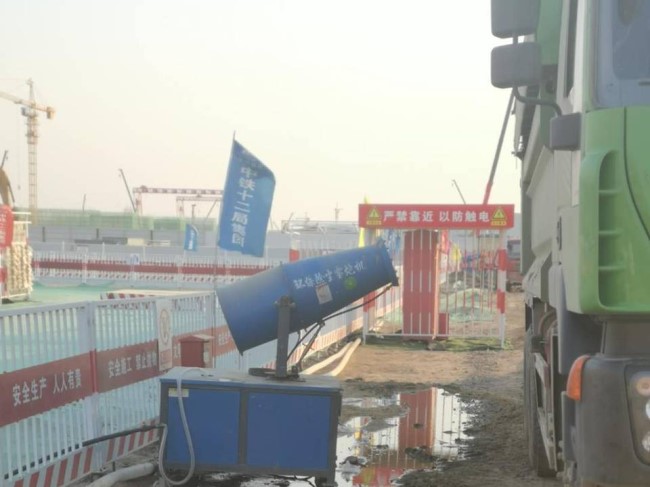環(huán)保除塵霧炮機在施工現(xiàn)場作業(yè)。人民網(wǎng)5月7日攝