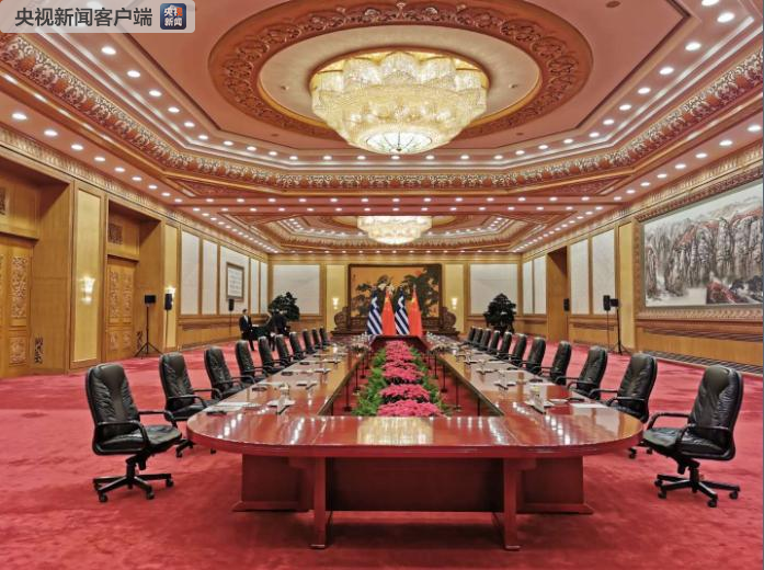 △習(xí)近平和希臘總統(tǒng)帕夫洛普洛斯在人民大會堂東大廳會談。(央視記者荊偉拍攝)