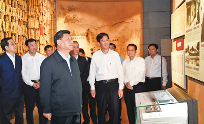 5月20日至22日,中共中央總書記、國家主席、中央軍委主席習近平在江西考察,主持召開推動中部地區(qū)崛起工作座談會并發(fā)表重要講話。這是習近平在贛州市于都縣中央紅軍長征出發(fā)紀念館參觀,聽取有關(guān)中央紅軍長征集結(jié)出發(fā)歷史情況介紹。新華社記者 謝環(huán)馳攝