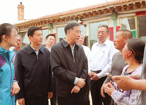 右玉縣位于毛烏素沙漠天然風(fēng)口地帶,原本是風(fēng)沙成患、山川貧瘠的“不毛之地”。新中國成立70年來,歷屆縣委堅(jiān)持不懈帶領(lǐng)群眾防風(fēng)固沙、植樹造林、改善生態(tài),創(chuàng)造了荒漠變綠洲的生態(tài)奇跡。2018年右玉縣成為山西省首批脫貧摘帽的國家級貧困縣之一,生態(tài)文明建設(shè)成為右玉打贏脫貧攻堅(jiān)戰(zhàn)的關(guān)鍵舉措。4日至5日,汪洋先后來到右玉精神展覽館、南山森林公園豐碑、四五道嶺,考察植樹造林、水土保持、生態(tài)綜合治理情況。他還走進(jìn)企業(yè)、學(xué)校和貧困戶,詳細(xì)了解產(chǎn)業(yè)扶貧、生態(tài)扶貧、教育扶貧等情況。