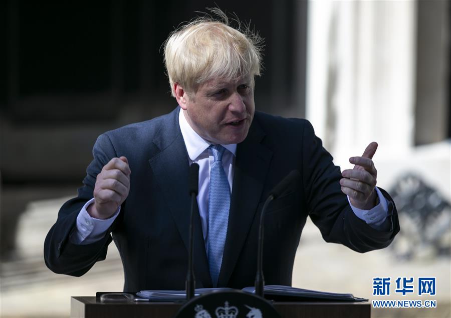 7月24日,在英國倫敦,新當選的英國首相鮑里斯·約翰遜在唐寧街10號首相府門前發(fā)表講話。 英國前外交大臣、倫敦前市長鮑里斯·約翰遜23日當選執(zhí)政黨保守黨領袖,在獲得女王伊麗莎白二世批準后將接替特雷莎·梅擔任英國首相。 新華社記者 韓巖 攝