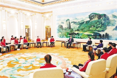 習(xí)近平強(qiáng)調(diào),全面建設(shè)社會(huì)主義現(xiàn)代化強(qiáng)國(guó),需要在各方面都強(qiáng)起來(lái)。實(shí)現(xiàn)體育強(qiáng)國(guó)目標(biāo),要大力弘揚(yáng)新時(shí)代的女排精神,把體育健身同人民健康結(jié)合起來(lái),把弘揚(yáng)中華體育精神同堅(jiān)定文化自信結(jié)合起來(lái),堅(jiān)持舉國(guó)體制和市場(chǎng)機(jī)制相結(jié)合,不忘初心,持之以恒,努力開(kāi)創(chuàng)新時(shí)代我國(guó)體育事業(yè)新局面。希望中國(guó)女排繼續(xù)加油、再接再厲,期待你們?cè)跂|京奧運(yùn)會(huì)取得優(yōu)異成績(jī)。