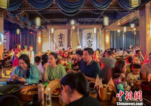 黃金周江蘇“夜生活”貢獻過半假日收入。圖為《江湖盛宴》武俠主題餐秀人流攢動。 唐娟 攝