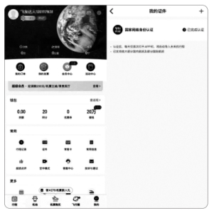 以某航旅App為例,點(diǎn)擊“國(guó)家網(wǎng)絡(luò)身份認(rèn)證”圖標(biāo)進(jìn)行關(guān)聯(lián)登錄,便可以不再輸入身份證號(hào)碼。登錄完成后,點(diǎn)擊證件可看到顯示已用國(guó)家網(wǎng)絡(luò)身份認(rèn)證完成認(rèn)證。