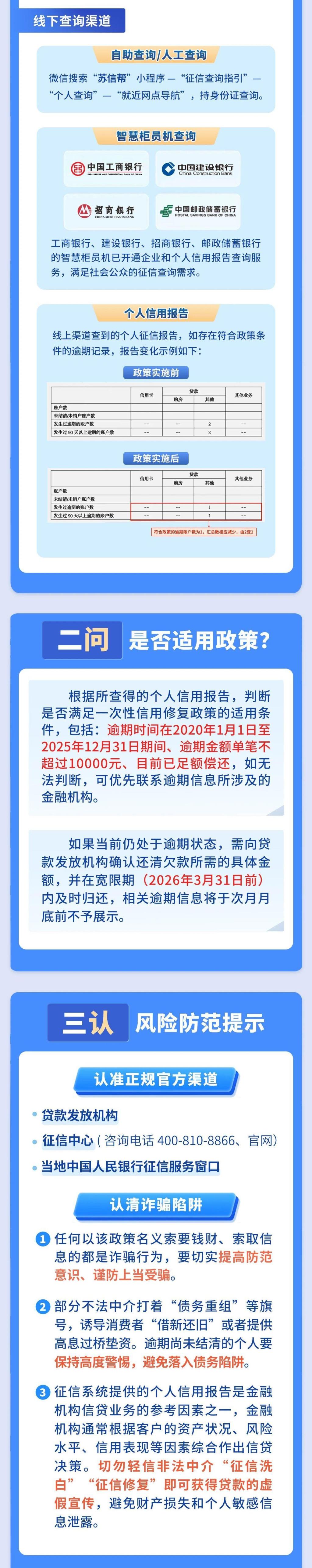 5.適用范圍:政策不區(qū)分貸款機(jī)構(gòu)類型及信貸業(yè)務(wù)種類,覆蓋信用卡、消費(fèi)貸、個(gè)人貸款等日常生活中常見的個(gè)人信貸逾期情形。