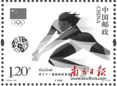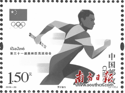 據(jù)介紹,第一枚郵票選擇排球比賽經(jīng)典瞬間,人物具有動(dòng)感,漸變色條也帶出運(yùn)動(dòng)的速度感,郵票顏色特別選擇了代表巴西的綠、黃、藍(lán)三色。而第二枚郵票選擇了男子接棒后奔跑瞬間,顏色以代表中國的紅、黃色為主。郵票由北京郵票廠采用影寫版印制,特殊工藝運(yùn)用體現(xiàn)明信出郵票動(dòng)感和科技感。