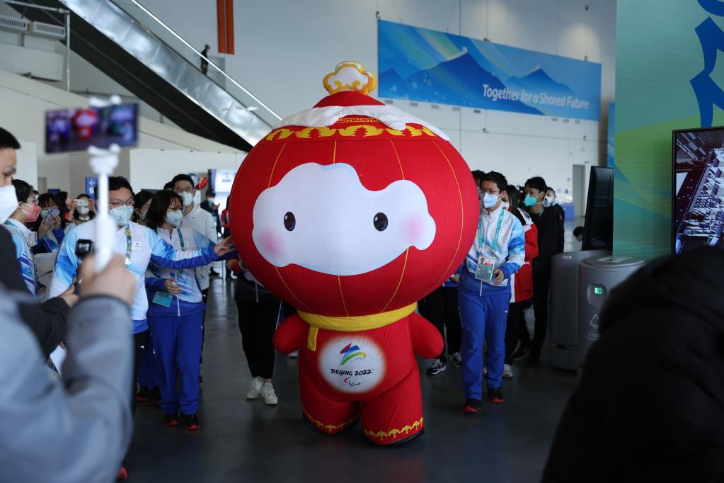 3月8日,北京2022年冬殘奧會(huì)吉祥物“雪容融”出現(xiàn)在主媒體中心。新華社發(fā)(胡星宇攝)