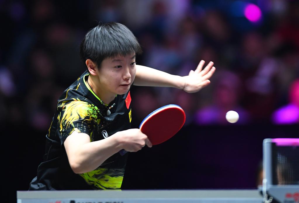 4月10日,孫穎莎在比賽中回球。新華社記者 郝源 攝
