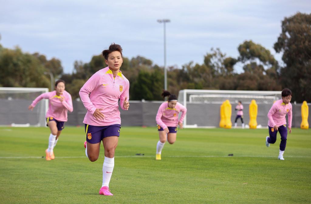 7月10日,中國隊球員王霜(左二)在訓(xùn)練中。新華社發(fā)(謝思達(dá)攝)