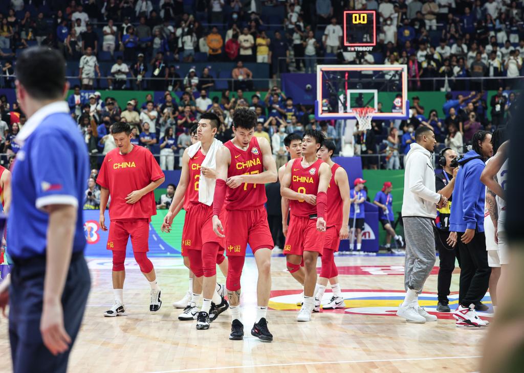 9月2日,中國(guó)隊(duì)球員在比賽后。當(dāng)日,在菲律賓馬尼拉進(jìn)行的2023年籃球世界杯17-32名排位賽中,中國(guó)隊(duì)以75:96不敵菲律賓隊(duì)。新華社記者 吳壯 攝