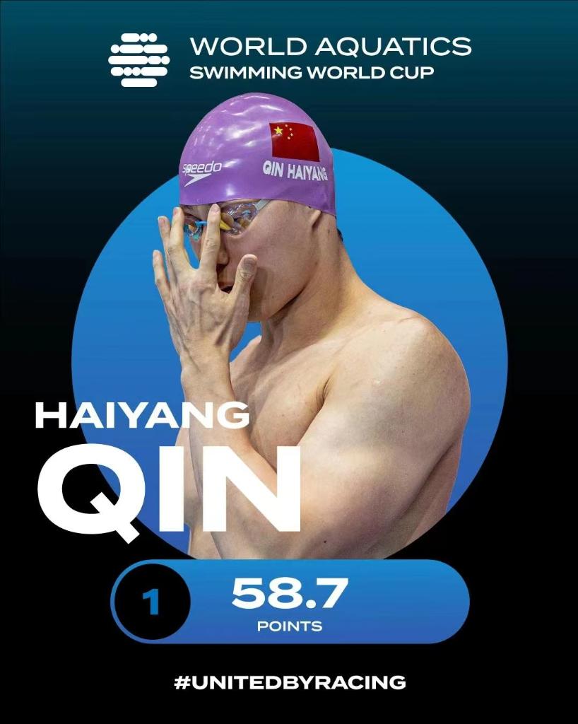 本年度世界杯共設三站,柏林為第一站,在杭州亞運會獲得“最有價值運動員”的張雨霏和覃海洋以及年輕選手董志豪代表中國隊參賽。 世錦賽“三冠王”覃海洋在柏林站繼續(xù)蛙泳“套餐”,改寫三項世界杯紀錄:50米26秒29;100米57秒69,平亞洲紀錄;200米2分07秒45。董志豪以2分08秒60獲得200米蛙泳銀牌。其中,100米蛙泳堪稱“強強對抗”:覃海洋與英國的兩屆奧運冠軍皮蒂、今年世錦賽的并列亞軍三人組——荷蘭的坎明加、意大利的馬丁嫩吉和美國老將尼克·芬克同場較量,最終覃海洋更勝一籌,皮蒂名列第六。