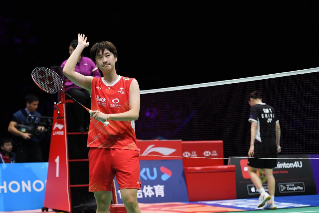 女單冠軍的爭奪在中國隊(duì)選手陳雨菲和韓悅之間展開。兩人前兩局戰(zhàn)至1:1后,韓悅因傷退賽。