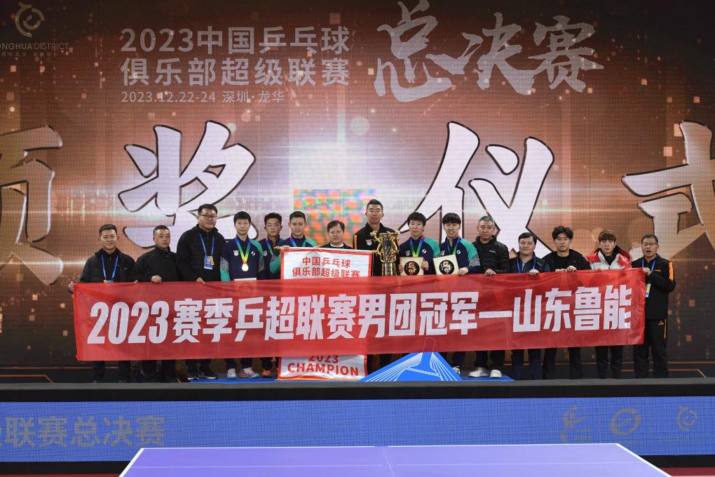 新華社深圳12月24日電(記者趙紫羽、王浩明、梁旭)2023賽季中國乒乓球俱樂部超級(jí)聯(lián)賽總決賽24日在深圳決出冠軍歸屬。馬龍坐鎮(zhèn)的山東魯能隊(duì)獲得男團(tuán)冠軍,陳夢(mèng)、孫穎莎領(lǐng)銜的深圳大學(xué)隊(duì)獲得女團(tuán)冠軍。