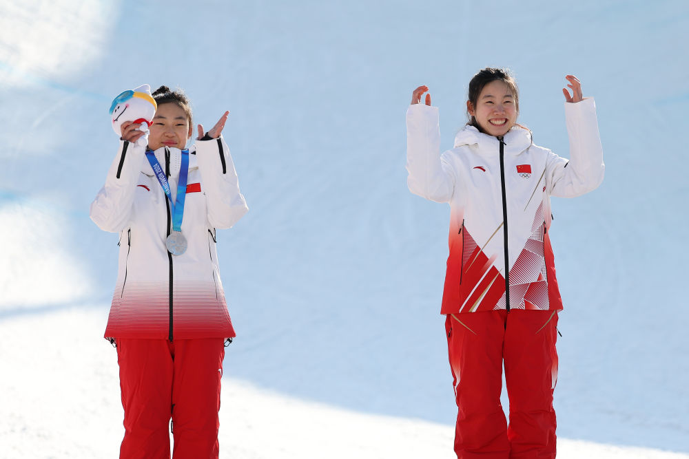 1月31日,冠軍中國(guó)選手劉奕杉(右)和亞軍中國(guó)選手陳紫菡在頒獎(jiǎng)儀式上。新華社記者 李明 攝