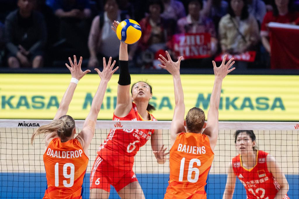 首局比賽中國隊失誤較多,荷蘭隊取得13:6的領(lǐng)先。中國隊請求暫停后迅速調(diào)整狀態(tài),一度將分差縮小至3分,但最終還是以21:25告負(fù)。第二局,中國隊在開局落后的情況下依靠多點進(jìn)攻在后半段反超比分,以25:23扳平大比分。士氣大振的中國女排在接下來的比賽中掌握了主動,進(jìn)攻更加積極,以25:23、25:21連下兩局贏得勝利。