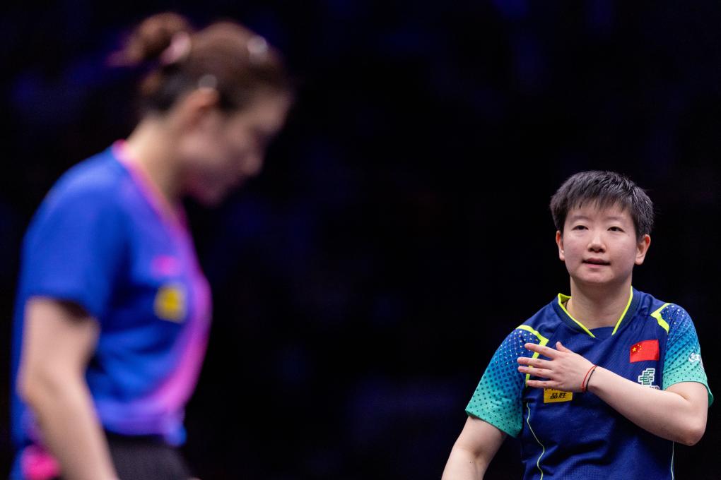 6月2日,孫穎莎(右)在比賽中。新華社記者 黃偉 攝