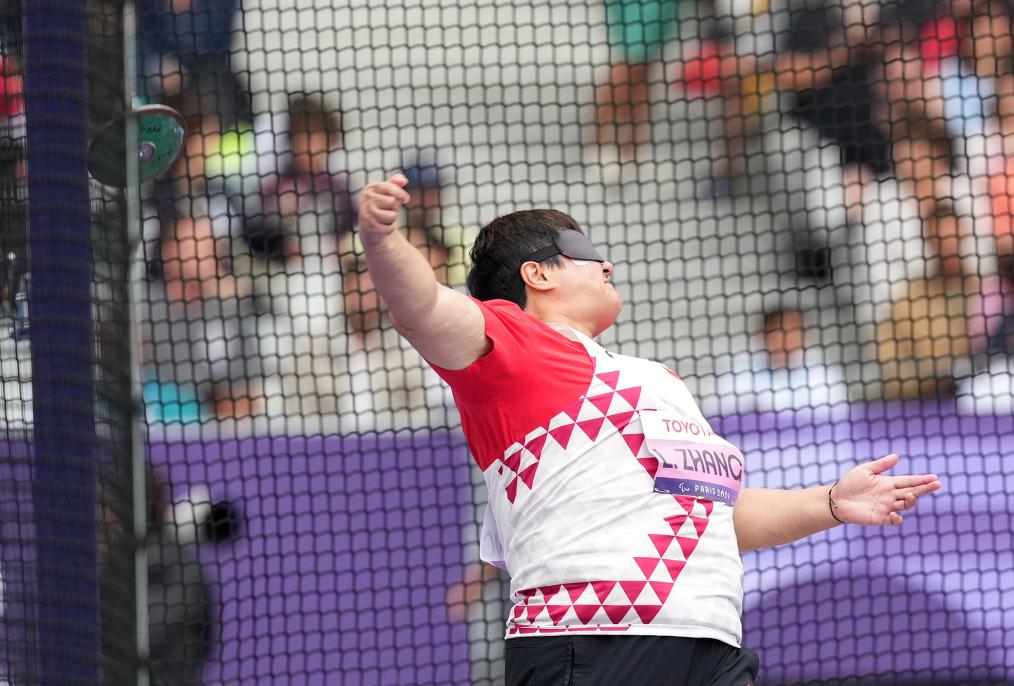 9月3日,張亮敏在比賽中試投。當(dāng)日,在巴黎殘奧會(huì)田徑女子鐵餅F11級(jí)決賽中,中國選手張亮敏以39米08的成績(jī)獲得金牌。新華社記者 賀燦鈴 攝