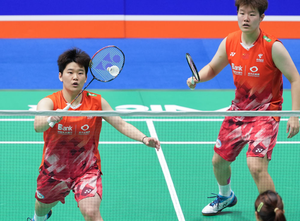 9月19日,梁偉鏗/王昶(左)在比賽中。新華社記者 楊磊 攝