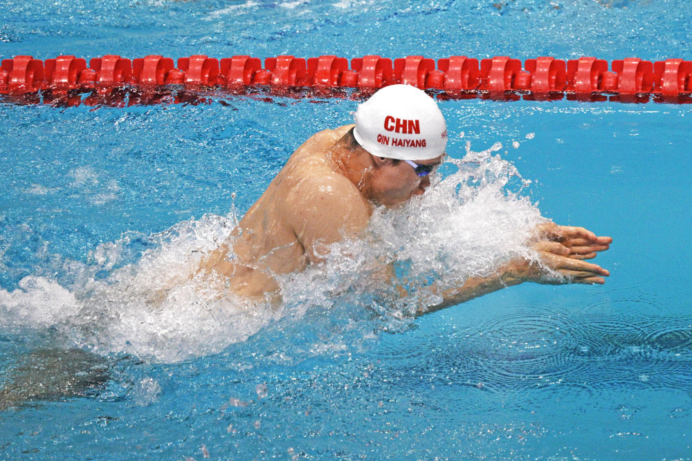 在男子100米蛙泳決賽中,覃海洋在最后沖刺時(shí)反超對手,以55秒61的成績奪得金牌,追平賽會紀(jì)錄并改寫亞洲紀(jì)錄。至此,在本賽季全部三站男子100米蛙泳比賽中,覃海洋收獲2金1銀。