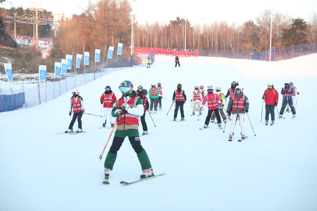 室外滑雪場上,400余名師生參加了滑雪課教學(xué)、滑雪技能展示以及長春學(xué)生滑雪錦標(biāo)賽。長春冰雪新天地的冰場上,來自長春市7所學(xué)校的700余名學(xué)生開展了短道速滑、冰球等冰上競技以及抽冰尜、滑冰車等冰上游戲活動。雪地上,300余名學(xué)生參加了雪地足球、雪合戰(zhàn)、雪上拔河等運動。