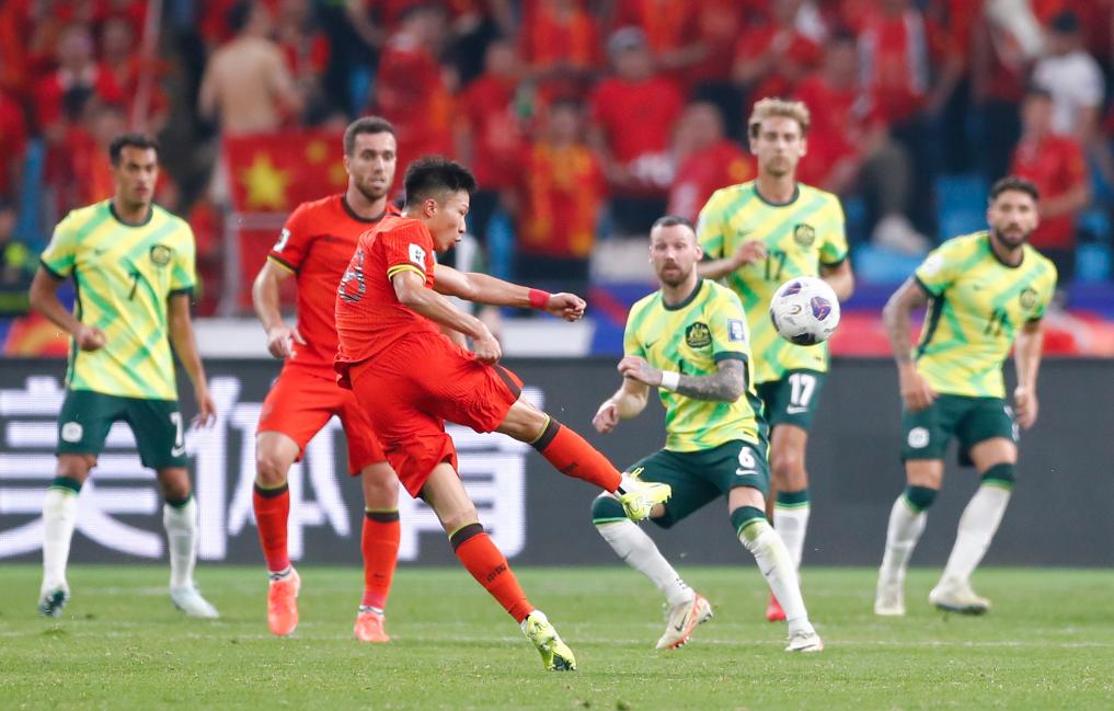 3月25日,中國隊(duì)球員楊澤翔(前)在比賽中射門。新華社記者 胡星宇 攝 下半場,中國隊(duì)在人員上進(jìn)行調(diào)整,歸化球員塞爾吉尼奧換下韋世豪,首次為中國隊(duì)登場。與上半場相比,中國隊(duì)的進(jìn)攻有了明顯起色,多腳射門給澳大利亞隊(duì)球門造成威脅。第53分鐘,中國隊(duì)在澳大利亞隊(duì)禁區(qū)前沿打出配合,塞爾吉尼奧得球后一腳勁射,可惜射門稍正,被對方門將單掌托出,中國隊(duì)錯失進(jìn)球良機(jī)。 久攻不下,中國隊(duì)在第65分鐘繼續(xù)換人,汪海健和U20小將王鈺棟分別替換黃政宇和謝文能。中國隊(duì)隨后逐漸占據(jù)主動,但始終未能攻破對方球門,最終以0:2敗北。