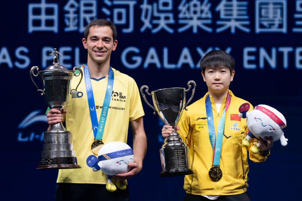 新華社澳門(mén)4月20日電(記者齊菲、孟佳)2025年國(guó)際乒聯(lián)男子及女子世界杯20日迎來(lái)收官戰(zhàn)。中國(guó)隊(duì)名將孫穎莎4:0戰(zhàn)勝隊(duì)友蒯曼,成功衛(wèi)冕冠軍。雨果·卡爾德拉諾則以4:1擊敗中國(guó)隊(duì)的林詩(shī)棟,成為首位獲得乒乓球世界杯男單冠軍的巴西運(yùn)動(dòng)員,而這也是中國(guó)男乒自2017年世界杯后,首次丟掉“三大賽”(奧運(yùn)會(huì)、世乒賽、世界杯)單打冠軍。
