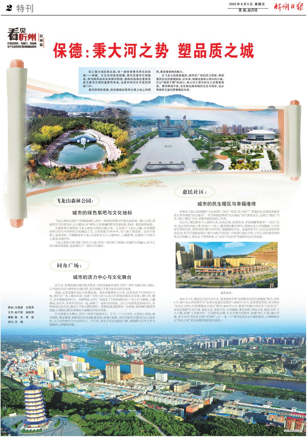 從飛龍山的綠意盎然,到同舟廣場的活力四射,再到惠民社區(qū)的溫情脈脈,近年來,保德這座依山傍水的小城,正以“城保于德”的初心,將山河之固與民生之安緊緊相連。黃河奔流不息,見證著這座縣城的過去與現(xiàn)在,也必將陪伴它走向更璀璨的未來。