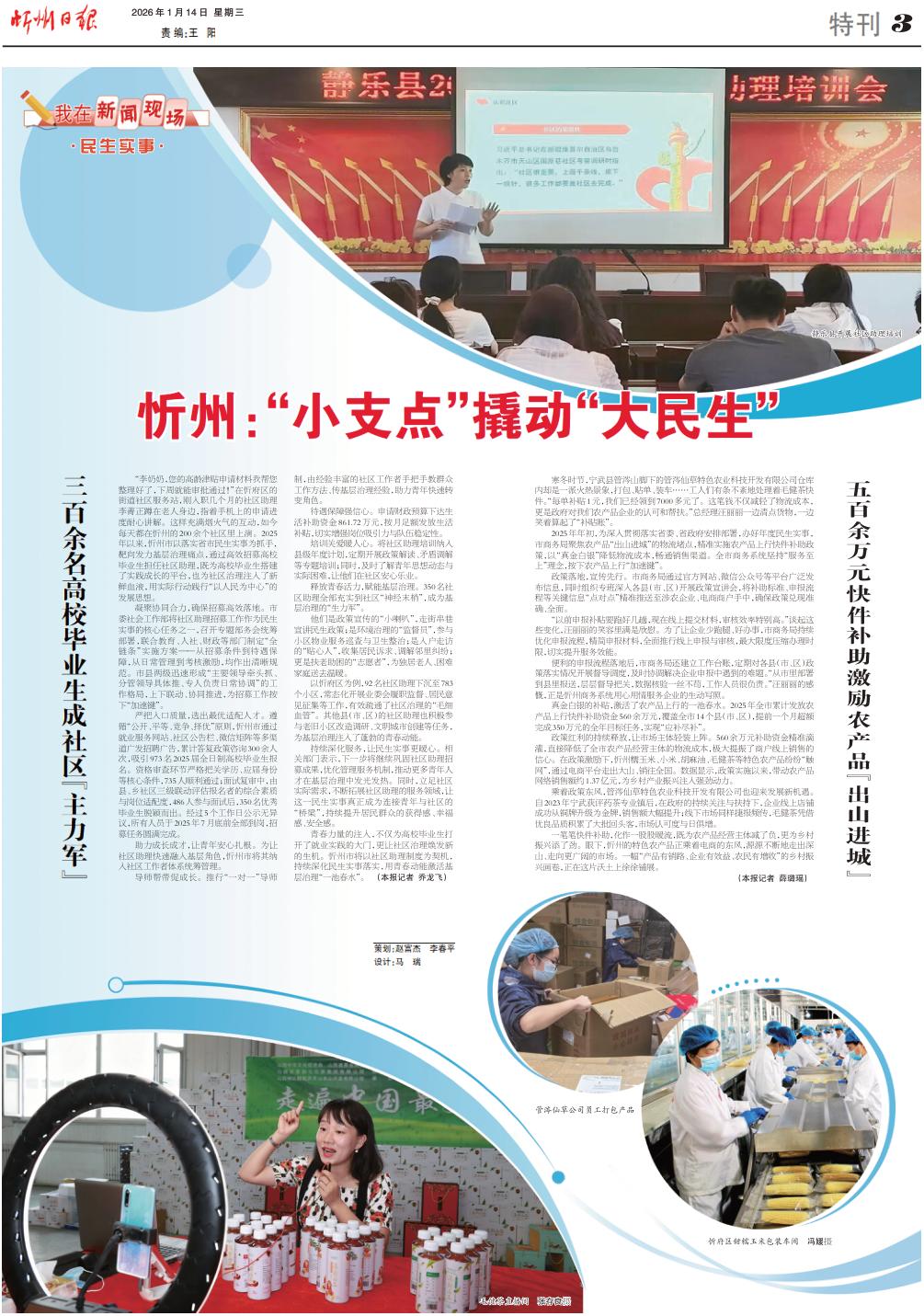 青春力量的注入,不僅為高校畢業(yè)生打開了就業(yè)實(shí)踐的大門,更讓社區(qū)治理煥發(fā)新的生機(jī)。忻州市將以社區(qū)助理制度為契機(jī),持續(xù)深化民生實(shí)事落實(shí),用青春動(dòng)能激活基層治理“一池春水”。(本報(bào)記者喬龍飛)