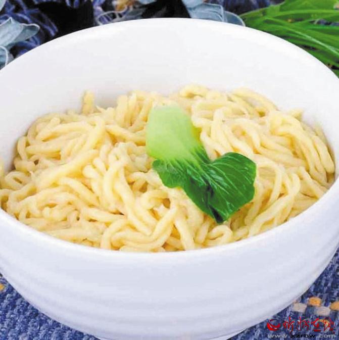 豆面稍加白面制成的豆面河撈是五寨當(dāng)?shù)氐奶厣s糧主食,經(jīng)特制的河撈床下到鍋里,待面壓到一定長(zhǎng)度,截?cái)嗝鏃l,煮熟后配上各種澆頭,吃著筋滑利口。(張志遠(yuǎn))