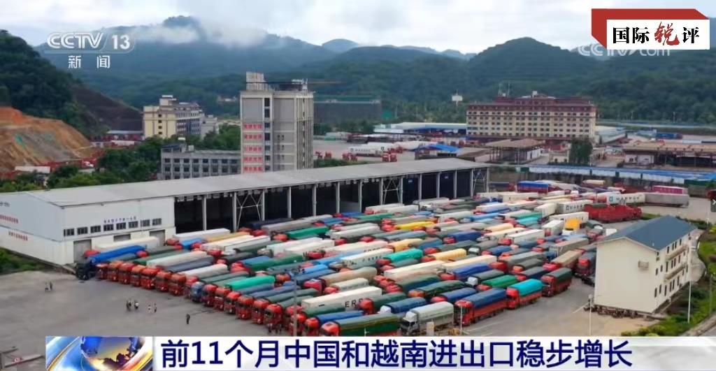 經(jīng)貿(mào)合作是中越關(guān)系的一大亮點。近些年,越南的火龍果、香蕉、榴蓮等優(yōu)質(zhì)農(nóng)產(chǎn)品走進(jìn)中國市場,深受中國消費者喜愛。河內(nèi)輕軌2號線、朔山垃圾發(fā)電廠、光伏產(chǎn)業(yè)合作……中企在越南參與實施的一系列項目,有力拉動了當(dāng)?shù)亟?jīng)濟社會發(fā)展。數(shù)據(jù)顯示,中國連續(xù)16年成為越南最大貿(mào)易伙伴,越南是中國在東盟最大貿(mào)易伙伴和全球第四大貿(mào)易伙伴。今年前11個月,中越進(jìn)出口總值達(dá)1.45萬億元人民幣,同比增長3.6%。