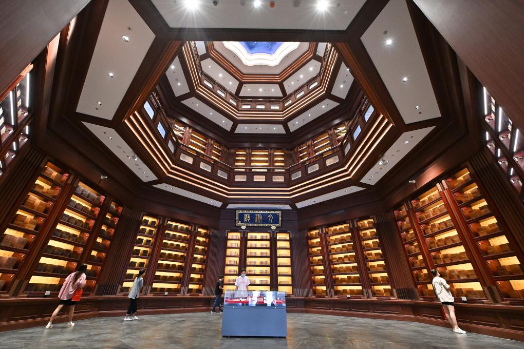 2022年7月30日,觀眾在中國國家版本館中央總館文瀚廳內參觀。當日,中國國家版本館開館暨展覽開幕式在中國國家版本館中央總館舉行。新華社記者 李鑫 攝