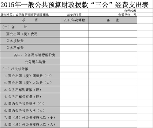 忻州日報社2015年度部門決算