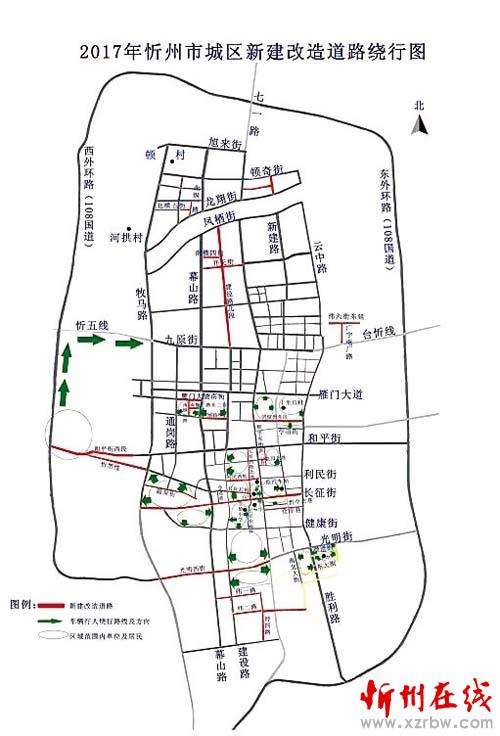 ⑴和平西街道路工程(西起208國道,東至大運(yùn)高速)涉及流江村群眾交通出行問題,建議流江村出行群眾繞行忻五線、忻保線;從靜樂方向沿忻黑線駛?cè)胧袇^(qū)的車輛繞行忻五線、光明街。