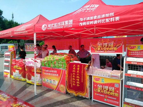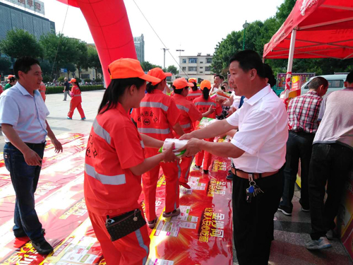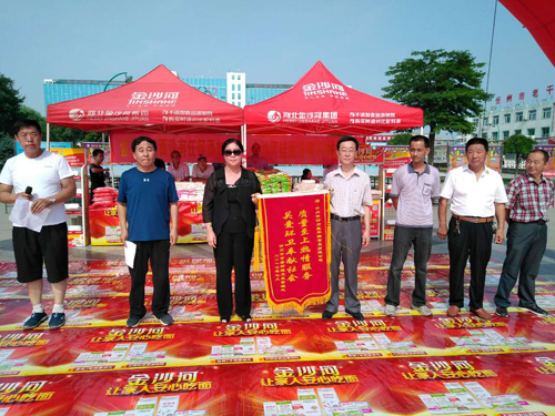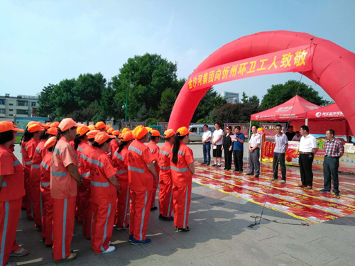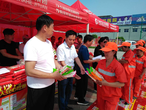 本網(wǎng)訊 7月16日上午,忻府區(qū)華琳食品有限公司在體育廣場舉辦“金沙河集團向忻州環(huán)衛(wèi)工人致敬”的慰問活動。向忻州約1300名環(huán)衛(wèi)工人捐贈“金沙河”牌掛面、刀削面等食品,捐贈價值達(dá)上萬元。