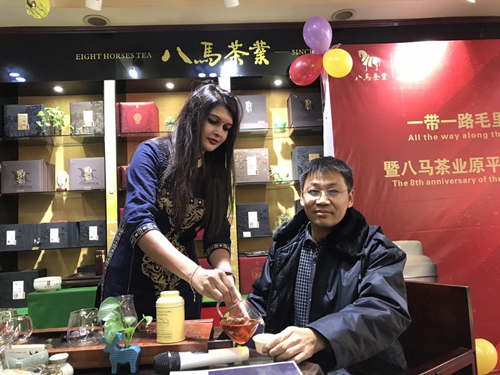 12月13日,毛里求斯姑娘早上從河南來,到原平八馬茶業(yè)店推介毛里求斯國禮茶。