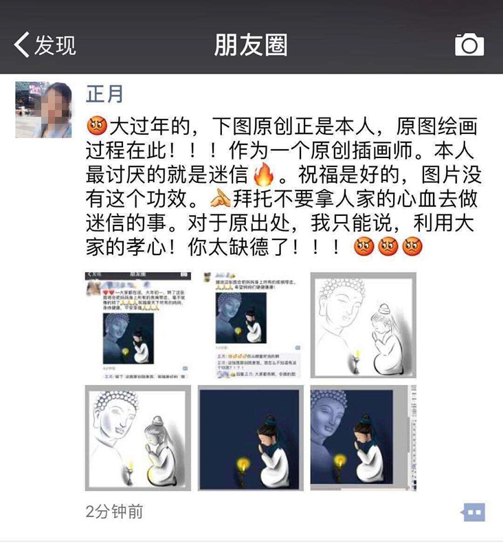 @正月插畫師在聲明中還特別強(qiáng)調(diào):自己很討厭迷信,這畫火的十分突然。那些利用大家的孝心的人!太缺德了!??!