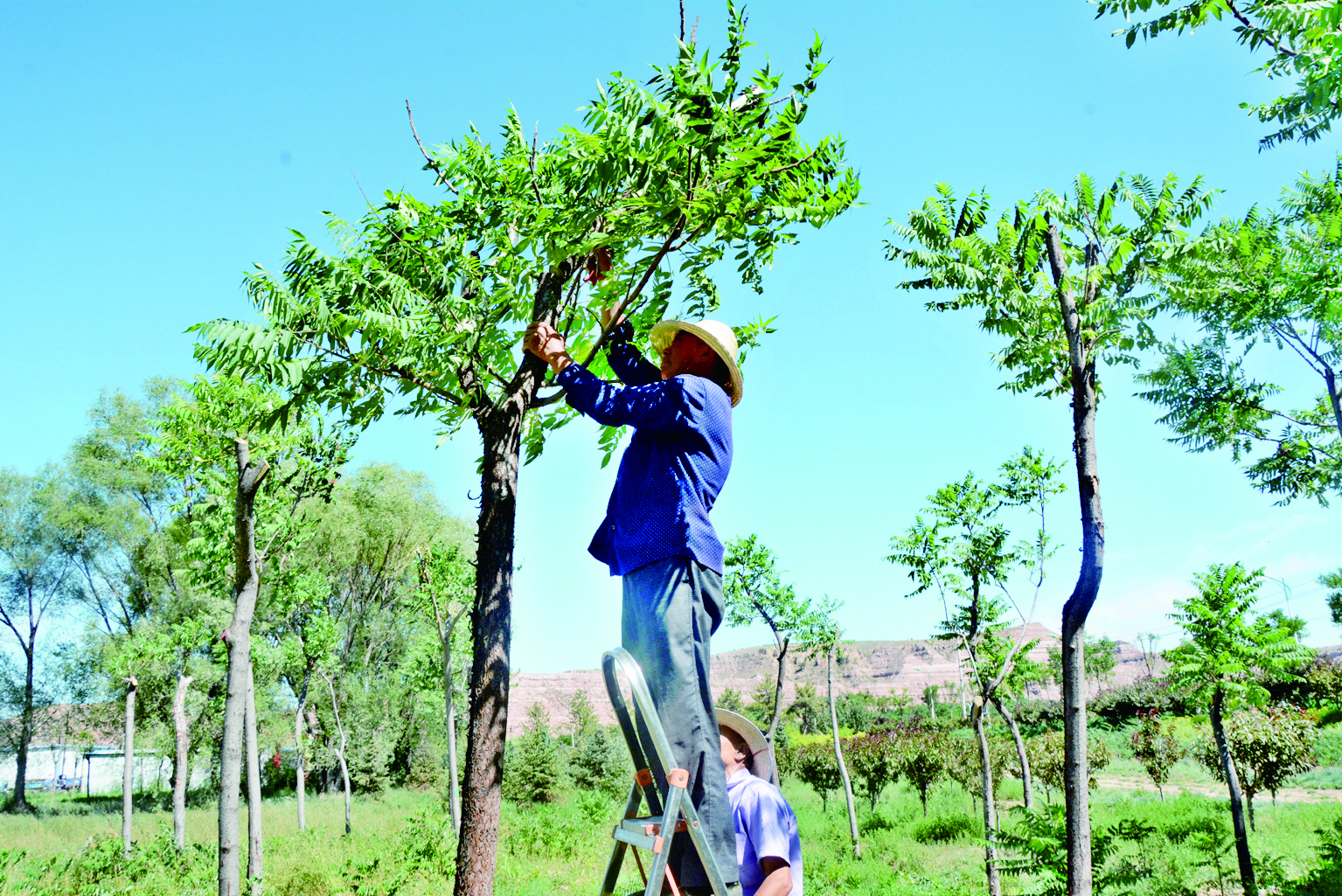 7月21日,河曲縣濱河生態(tài)濕地公園,園林工正在鋸掉火炬樹枯干枯枝,提升整體美觀度。該縣在高標準規(guī)劃、高質(zhì)量施工基礎上,強化綠植各項管護措施,硬是將一片“爛河灘”打造成450畝生態(tài)濕地公園,有效改善了縣城生態(tài)環(huán)境。
