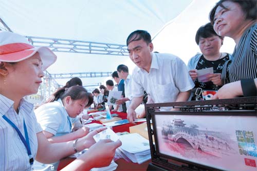 5 月19 日,集郵愛好者在河北省邯鄲市永年區(qū)廣府古城購(gòu)買《中國(guó)古鎮(zhèn)(三)》特種郵票。新華社發(fā)(郝群英攝)