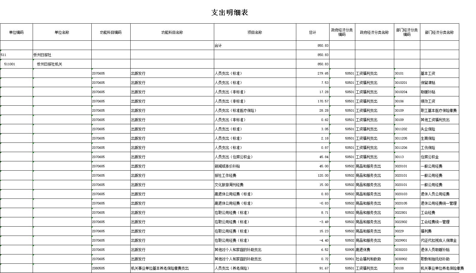11、支出預(yù)算分經(jīng)濟(jì)科目匯總表