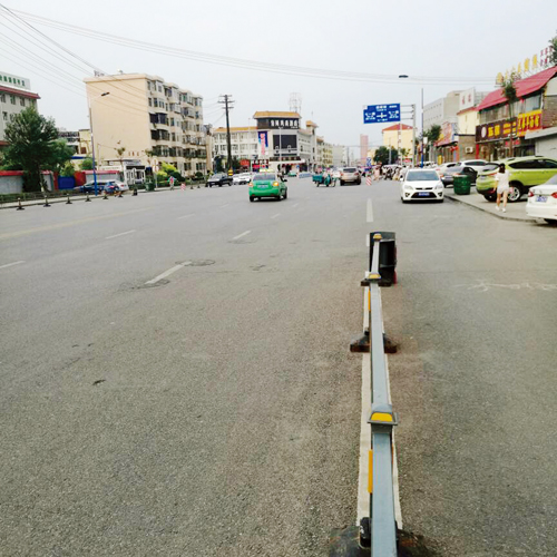 城區(qū)團結街與七一路交叉的十字路口西南段,人行道與機動車道之間的護欄前端被撞損壞,存在安全隱患。提醒有關部門及時修復或拆卸以保安全。