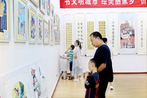 本報(bào)訊 妙筆書(shū)寫(xiě)文明城市,巧手繪制美麗家鄉(xiāng)。7月1日,黨的97歲華誕之際,忻州市首屆中小學(xué)生書(shū)畫(huà)大賽優(yōu)秀作品展在五臺(tái)山書(shū)畫(huà)院開(kāi)展。