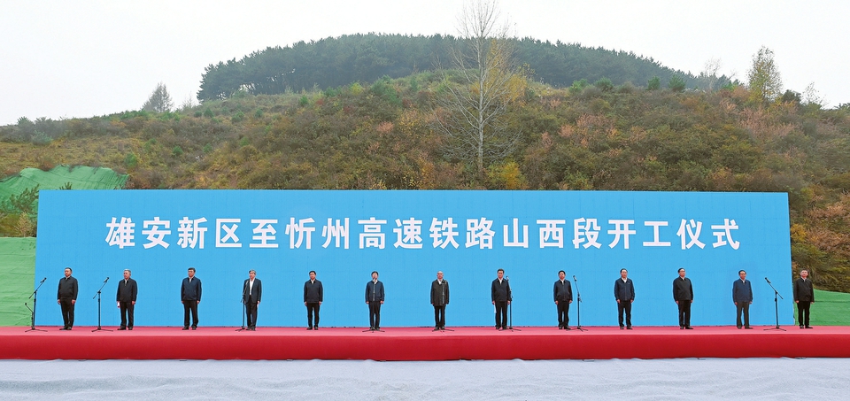 雄安新區(qū)至忻州高速鐵路山西段開(kāi)工儀式現(xiàn)場(chǎng)。 山西日?qǐng)?bào)記者 史曉波攝