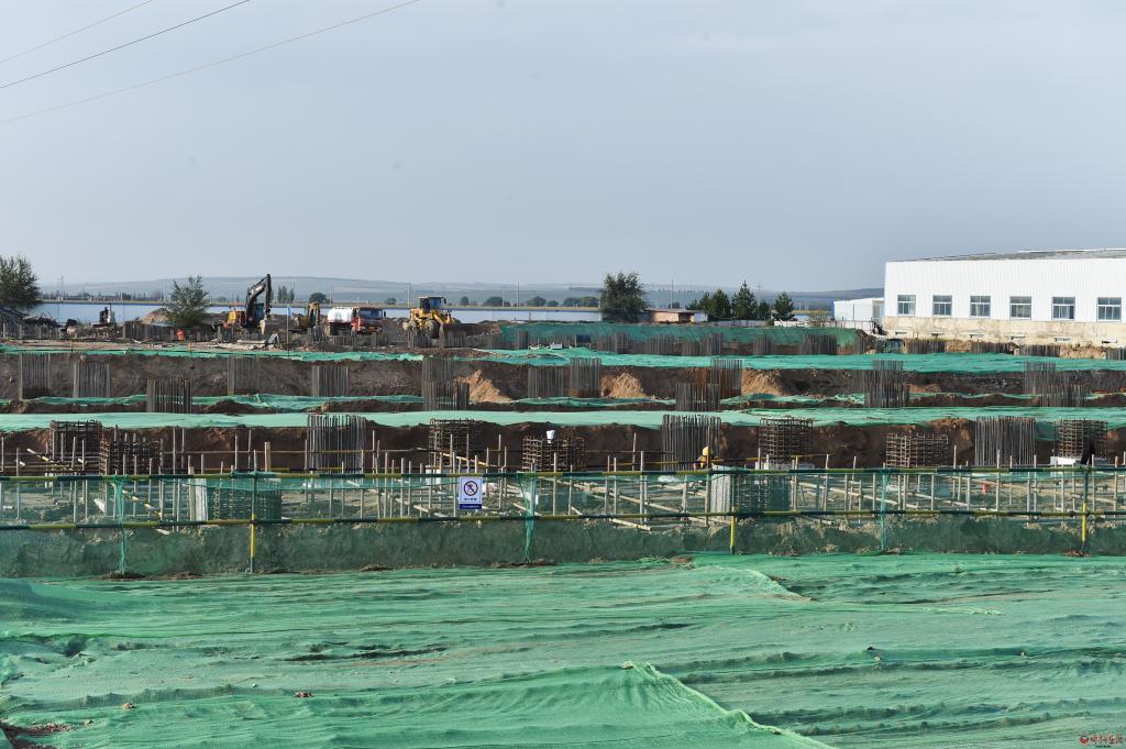 在糧食倉儲物流中心觀摩檢查糧食倉儲項目建設情況。馮曉磊 攝